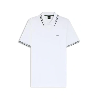 BOSS Mens Paul Stretch Cotton Slim fit Polo Shirt with Branding and Stripes