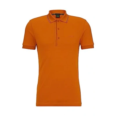 BOSS Mens Paule 4 Branded Placket Slim fit Polo Shirt in Cotton piqué Yellow