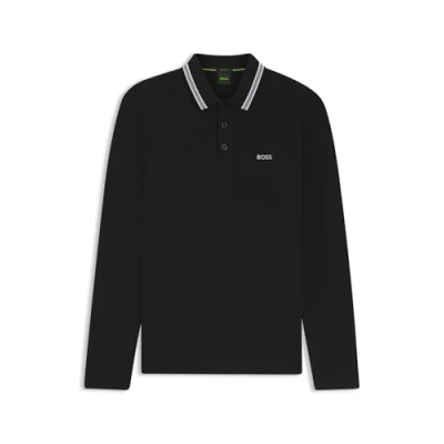 BOSS Mens Plisy Polo Shirt Long Sleeve Black S