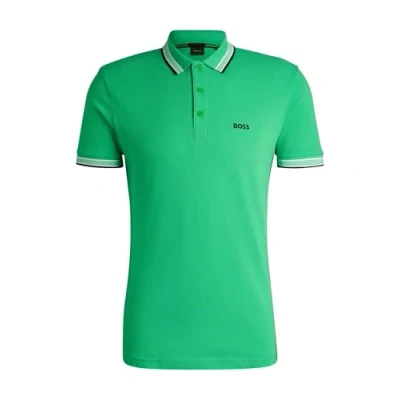 BOSS Mens Polo Shirt Short Sleeve Lifestyle Cotton Open Green XL