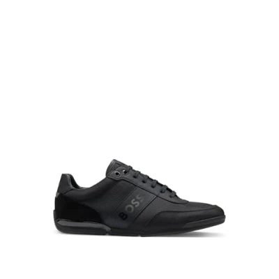 BOSS Mens Saturn Lowp Leather Trim Trainers with Logo Details Size 7 Black