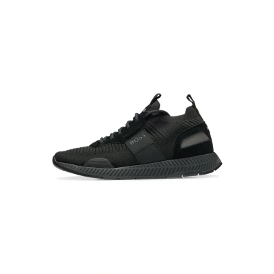 BOSS Mens Titanium Runn TTNM EVO Suede Trim Trainers in a Sock Style Size 5 Black