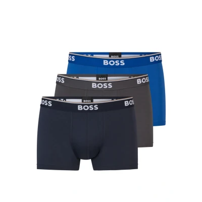 BOSS Mens Trunk 3P Power Three Pack of Logo Waistband Trunks in Stretch Cotton