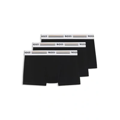 BOSS Mens Trunk 3P Revive Three Pack of Stretch Trunks with Signature Stripe waistbands Black