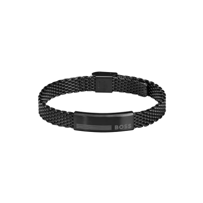 Alen Bracelet: BOSS Jewelry reimagines the mesh watch bracelet with the Alen collection, a modern bracelet pairing a mesh strap with a branded metal plate Plated Elegance: Infused with a layer of lustrous black ion plating, this stainless steel jewelry brings understated sophistication to your collection Adjustable and Stylish Size: Wear the Alen bracelet with comfort thanks to its adjustability, providing a maximum inner circumference of 200 mm; with a width of 10 mm, this piece adds a touch of contemporary style to your wrist Signature Plate Design: The Alen bracelet features a brushed plate with faceted edges, imprinted with the BOSS logo and a distinctive stripe; this elegant detail adds a touch of sophistication to your wrist, making it a signature piece for your collection Mesh Clasp Design: This bracelet features a stylish mesh clasp, inspired by watches; the adjustable closure ensures a customized and secure fit