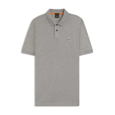 Boss Orange Passenger Mens Stretch Cotton Slim Fit Polo Shirt with Logo Patch Dark Grey Size Large