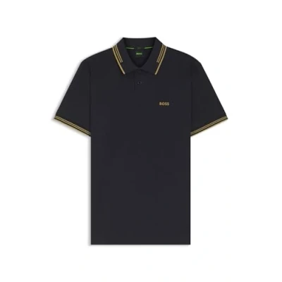 A contemporary polo shirt cut to a defined fit by BOSS Menswear, created in stretch cotton with contrast stripes and branding.Slim fitFlat-knit collarNumber of buttons: 2Short sleevesFlat-knit cuffsStandard length92% Cotton, 8% Elastane50506193