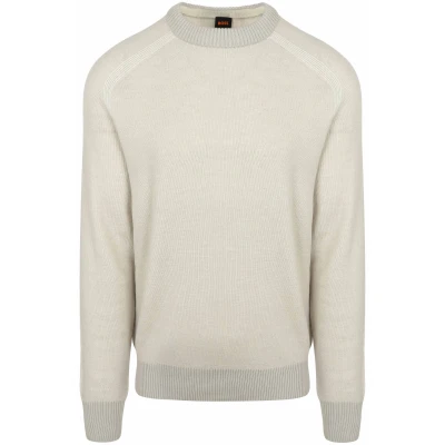 Suitable ShopBOSS Pull Akajer Ecru BOSS Pull Akajer Ecru in de kleur Beige met een pasvorm Regular-Fit is gemaakt van Acrylic en Wool met een Plain dessin.
