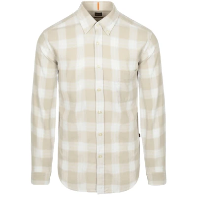 BOSS Rickert Shirt Checks Beige BOSS Rickert Shirt Checks Beige in the color Beige with a fit Modern-Fit is made from Cotton with Standard with a Checkered design and Long sleeves.