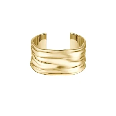 WOMEN’S BANGLE WITH FLOWING LINES – A sculptural, statement-making piece from BOSS Jewelry, designed to embody fluid elegance and modern femininity. YELLOW GOLD IP POLISHED FINISH – Crafted in high-shine stainless steel with yellow gold ion plating for a luminous, luxurious look. DIMENSIONS: 50 MM X 59 MM ; WIDTH: 36 MM – A bold profile designed to wrap the wrist with sculpted grace and light-catching curves. WAVE-INSPIRED SILHOUETTE – The surface features soft ripple lines inspired by wind-blown fabric, creating movement and visual texture. Pairs beautifully with the matching earrings. OPEN CUFF DESIGN FOR EASY WEAR – Flexible, slip-on construction for effortless styling and a comfortable fit.