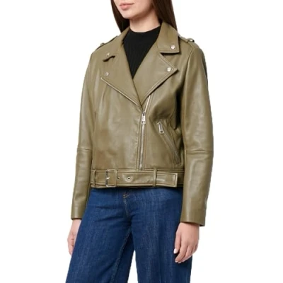 BOSS Sameli Leather jacket, Women's, Size: 12, Dark green