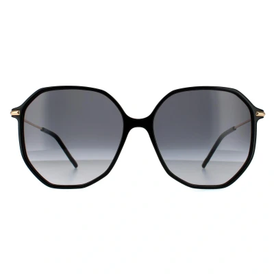 Hugo Boss Round Womens Black Gold Dark Grey Gradient 90041091 Hugo Boss are a round shaped frame crafted from lightweight acetate. The rubber nose pads and plastic temple tips ensure all day comfort. Hugo Boss's logo features on the ultra slim temples for brand recognition..