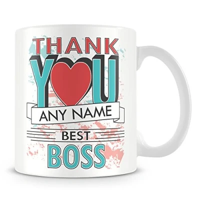 Boss Thank You Mug Personalised Cup Gift Customise with Name Blue