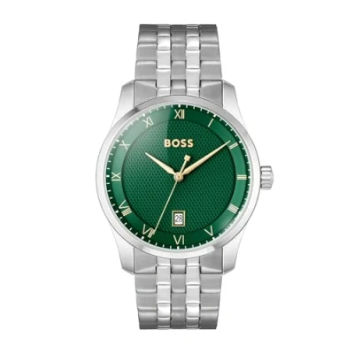 BOSS Three Hand Quartz Movement Watch for Men Principle Collection with Silver Stainless Steel Bracelet 1514124