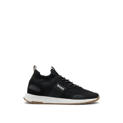 Contemporary sock-style trainers by BOSS, detailed with branding and suede trims.LacesUnlinedPackaging: Box85% Polyester, 80% Polyester (recycled) , 20% Polyester, 15% Polyurethane, Sole: 70% Ethylene vinyl acetate, 30% Rubber, Facing: 100% Cow skin, Upper material: 80% Polyester (recycled) , 20% Polyester, Innersole: 48% Polyester, 48% Viscose, 4% Polyurethane 50498245
