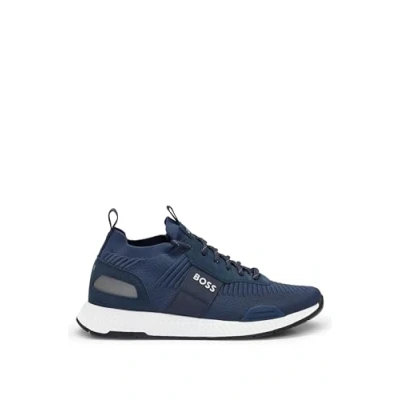 BOSS Titanium RUNN KNST N Trainers, Men's, Size: 9, Dark blue one Polyester