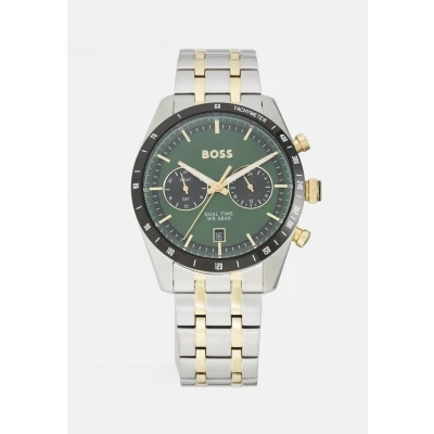 BOSS Tourmaster Chronograph watch silvercoloured/goldcoloured/green, Men's, Size: One Size, Silver/coloured/gold/coloured/green