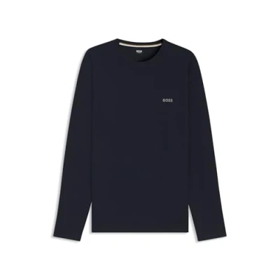 BOSS Waffle Long Sleeve Structured Pyjama Top in Dark Blue
