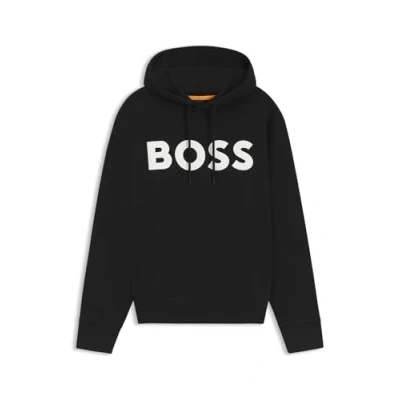 The BOSS Relaxed-fit Hoodie in Cotton Terry (Black, XL) offers premium comfort and style, crafted from 100% cotton French-terry fabric with a 320 GSM weight. Featuring a relaxed fit, classic drawstring hood, kangaroo pocket, and bold front logo, it's a versatile everyday essential for modern wardrobes.