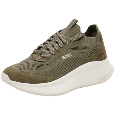 BOSS Women's TTNMEVO_Slon_lowkn Sneaker, Dark Green, 8 UK