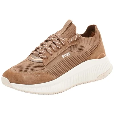 BOSS Women's TTNMEVO_Slon_lowkn Sneaker, Medium Beige, 6 UK