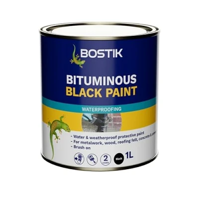 Bostik Bituminous Black Paint, Waterproofing Paint for Metalwork and Roofs, Brush On, Colour: Black, 1L Tin