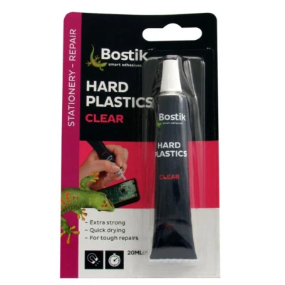 General description Bostik Hard Plastics glue is an ultra-strong, quick-drying clear adhesive designed for tough repairs on most hard and clear rigid plastics, including PVC-U, ABS, acrylic, and high-impact polystyrene. It provides a strong, durable, and water-resistant bond, making it suitable for various DIY projects, household repairs, crafts, and hobbies. Technical specifications Type: Adhesive for hard plastics Color: Clear Volume: 20ml Water resistance: Yes Bond strength: Extra strong Compatibility and accessories Suitable for bonding PVC-U, ABS, acrylic, high-impact polystyrene, and similar materials Can also be used for sticking clear plastics, wood, metal, and leather Installation Apply the adhesive evenly to the surfaces to be bonded Press the parts together firmly Allow sufficient time for curing as per instructions Usage Ideal for DIY projects, household repairs, crafts, and hobbies Use in well-ventilated areas Keep the nozzle clean after use to prevent clogging Other