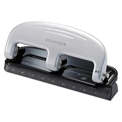 EZ Squeeze technology by PaperPro requires 50% less force Easily punches up to 20 sheets No-Jam technology for smooth, hassle-free punching Metal construction for superior performance and durability Integrated ruler for convenient measuring Paper guide keeps documents in place for hole placement accuracy Easy-clean chip tray for less mess Handle lock for easy storage Punches standard three-hole configuration