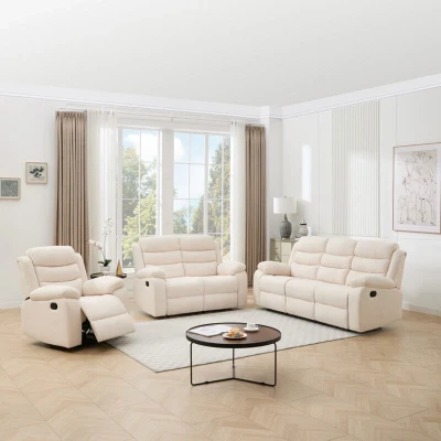 Boston 1+2+3 Seater Manual Fabric Recliner Sofa Set Beige