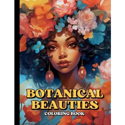 Botanical Beauties: Black Girl Coloring Book for Adults: 50 Portraits of Beautiful Women with Flowers and Various Hairstyles Gift African American Woman