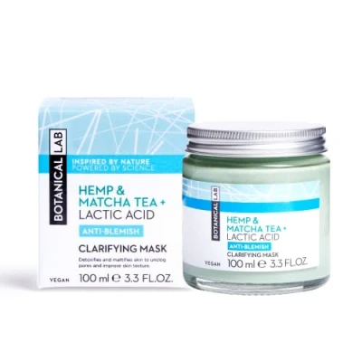 Our New Hemp & Matcha Tea Clarifying Clay Mask detoxifies, helps to unclog pores and improve skin texture to promote clearer skin. The clay face mask combines Matcha Green Tea with naturally derived Cannabis Sativa Seed oil helping to slough away dead skin cells and gently remove the everyday build-up of impurities and excess oil. As well as the benefits of hemp seed oil, this hemp mask is formulated with mineral rich clay, salicylic acid and lactic acid to help detoxify pores and absorb excess oil. We’ve also added glycerin to ensure it won’t over dry the skin. Vegan friendly, formulated without; SLS, parabens, mineral oil, phthalates, synthetic fragrance & colourants Got maskne? Meet Botanical Lab, your new skincare BFF! Our range can help treat maskne prone skin and will help improve your overall skin health, tone and texture.