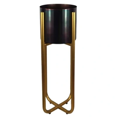 Botanik Tall Gold Stand with Black Metal Planter 62cm x 18cm