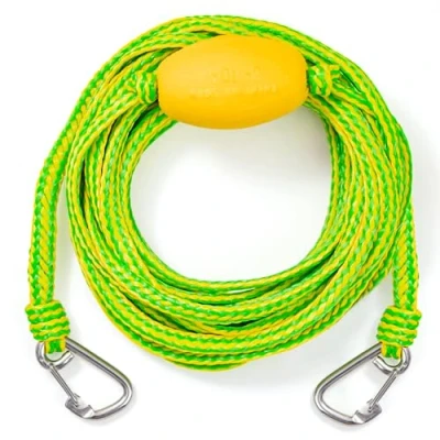 【Essential Tow Rope for Jetski Rescue and Recovery】 Designed specifically for towing disabled or stranded Jet Skis, this rope is a must-have for riders who venture far from shore. It provides a reliable connection between two Jet Skis or between a Jetski and a boat, ensuring you can tow safely when breakdowns happen or riders fall behind. 【Multi-Use: Also Works as Anchor Line for Small Watercraft】 In addition to towing, this rope doubles as a durable anchor line for Jet Skis, fishing bass boats, canoes, and other small vessels. Lightweight and compact, it’s easy to coil and store on board. 【Convenient and Quick Connection】Equipped with 2 316 stainless steel carabiners, it enables quick connection. Whether it is used for towing work or as an anchor rope to secure a boat, it can be installed within a short time, saving operation time. 【Safe 12-Meter Distance Between Towing Units】 The 12-meter length ensures enough separation between towing and towed crafts. It reduces the chance of water spray, wake interference, or accidental collisions, keeping the towing operation smooth and safe. 【Floating Design and Bright Green Visibility】 Floating balls keep the rope above water at all times to prevent sinking and entanglement with the impeller. The bright green color ensures high visibility in busy or choppy waters, helping other riders and rescuers see the rope clearly. 【High-Strength Hooks and Rope for Heavy Loads】 The rope features stainless steel quick-connect hooks rated for 4000 lbs of pull strength, paired with a 2200 lbs break-strength nylon rope. This combination provides reliable towing capacity for most personal watercraft in recreational or emergency use.