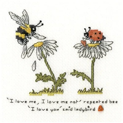 UK Fabric Thread & Needle Embroidery Kit Counted Pattern Finished size: 12 x 12 cm. Original name: Love Me Love Me Not Manufacturer number: XETE5, Series: Ladybird and Bee, Eleanor Teasdale, Manufacturer: Bothy Threads Ltd