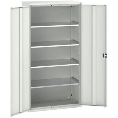 General description This Bott Verso Cupboard is designed for commercial and industrial environments, featuring two reinforced doors and four adjustable height, galvanised steel shelves with a load capacity of 75kg U.D.L. Its robust, fully welded steel housing ensures durability, while the light grey finish adds a modern touch. Technical specifications Colour: RAL 7035 Light Grey Width: 1050mm Depth: 550mm Height: 2000mm
