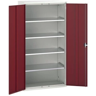 General description This Bott Verso Cupboard is designed for commercial and industrial environments, featuring two reinforced doors and four adjustable height, galvanised steel shelves with a load capacity of 75kg U.D.L. Its robust, fully welded steel housing ensures durability, while the durable powder coat paint finish adds an extra layer of protection. Technical specifications Colour: RAL 3004 Crimson Red Width: 1050mm Depth: 550mm Height: 2000mm
