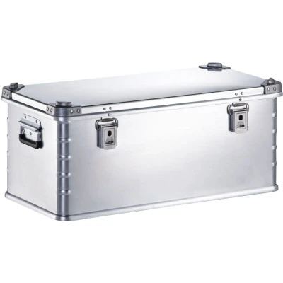 General description Bott Aluminium Transport Case is designed for high strength and durability, offering a lightweight solution for transportable storage. With a capacity of 81 litres, it is ideal for various storage needs. Technical specifications Dimensions (H x W x D): 340 x 785 x 385mm Internal Dimensions (H x W x D): 310 x 750 x 350mm Capacity: 81 Litres Weight: 6.1kg Load capacity per handle: 35kg Other information Made from aluminium with a ribbed body for additional strength. Fitted with a tough plastic protected grip. A recessed base prevents water absorption on wet floors. A shower resistant rubber seal on the lid protects the contents. The cases are stackable with plastic locating mounts fitted on each corner. Based on Europallet dimensions for easy shipping.