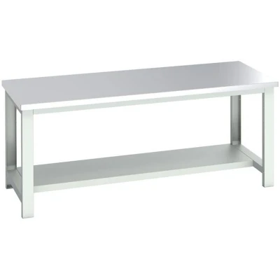 Bott Cubio Framework Bench (stainless Clad) with Half Depth Shelf WxDxH 2000x900x840mm Light Grey