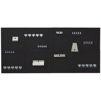 General description The Bott Perfo Panel & Hook Kit in Anthracite Grey offers flexible and efficient space-saving storage for tools, small parts, and components. It is designed for durability with fully flanged and reinforced mounting points, allowing for use side to side and end to end. Technical specifications Panel dimensions: 990 x 457 mm Includes: 4 x Perfo Panels Assorted Hook Kit: 40 pieces
