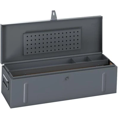 General description This Bott Steel Tool Chest provides convenient and secure mobile storage for tools and equipment, making it ideal for use on the road. Built to last, it meets the high standards of quality and durability expected from BOTT products. Technical specifications Dimensions (H x W x D): 430 x 910 x 530mm Internal Dimensions (H x W x D): 385 x 865 x 490mm Weight: 28.2kg Material: Phosphated steel with a durable epoxy powder-coat finish Other information Shower resistant wrapover lid protects contents from damage Hasp and straddle clasps accept padlocks for increased security Large models feature double grab handles and a durable hardboard lining to prevent tools from damaging the case