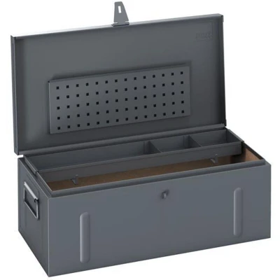 General description This Bott Steel Tool Chest provides convenient and secure mobile storage for tools and equipment, making it ideal for use on the road. Built to last, it meets the high standards of quality and durability expected from BOTT products. Technical specifications Dimensions (H x W x D): 340 x 830 x 440mm Internal Dimensions (H x W x D): 295 x 790 x 395mm Weight: 20.2kg Material: Phosphated steel construction with a durable epoxy powder-coat finish Other information Shower resistant wrapover lid protects contents from damage Hasp and straddle clasps accept padlocks for increased security Large models feature double grab handles and a durable hardboard lining to prevent tools from damaging the case