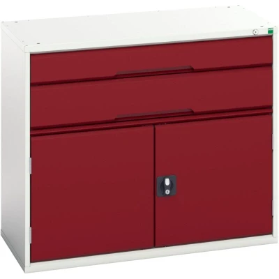 Bott Verso Combination Cupboard 1050 x 550 900mm 2X Drawers Light Grey/Red