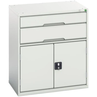 General description This Bott Verso 2 Drawer + Cupboard is designed for durability and functionality, featuring a robust, fully welded steel housing finished with a durable powder coat paint. Technical specifications Colour: RAL 7035 Light Grey Drawers: 1 x 125mm & 1 x 175mm Shelf: 1 Width: 800mm Depth: 550mm Height: 900mm Drawers capacity: 75kg U.D.L. Usage The Bott Verso 2 Drawer + Cupboard is ideal for industrial use, providing ample storage with easy access through its 100% extension roller bearing slides.