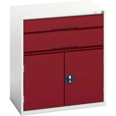 General description This Bott Verso 2 Drawer + Cupboard is designed for durability and functionality, featuring a robust, fully welded steel housing finished with a durable powder coat paint. It is ideal for industrial use, providing ample storage space with its drawers and cupboard. Technical specifications Colour: RAL 3004 Crimson Red Drawers: 1 x 125mm & 1 x 175mm Shelf: 1 Width: 800mm Depth: 550mm Height: 900mm Drawer capacity: 75kg U.D.L. Extension slides: 100% extension roller bearing slides Other information