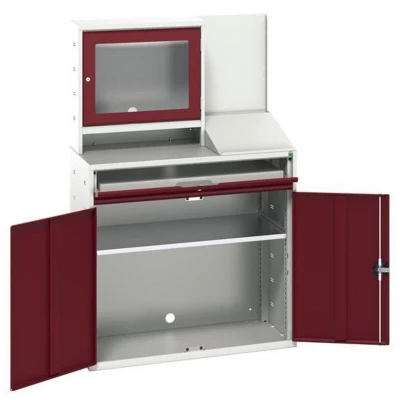 General description This BOTT Verso Computer Cupboard is designed for functionality and durability, featuring a vibrant RAL 3004 Crimson Red finish. It is ideal for various environments including schools, colleges, universities, libraries, offices, and heavy-duty industrial settings. Technical specifications Colour: RAL 3004 Crimson Red Dimensions (W x D x H): 1050 x 550 x 1650 mm Monitor housing: Lockable and ventilated Keyboard tray: Lockable and slide-out Lower cupboard: Galvanised steel shelf with a 75 kg U.D.L capacity Material: Fully welded steel housing with durable powder coat paint
