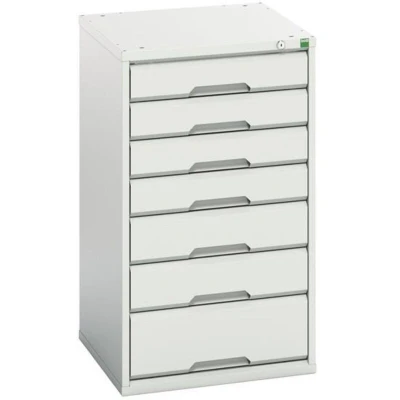 General description This Bott Verso 7 Drawer Cabinet is designed for industrial use, featuring a robust construction with fully welded steel housings. It offers a practical storage solution with seven drawers, making it ideal for organizing tools and equipment. Technical specifications Colour: RAL 7035 Light Grey Width: 525mm Depth: 550mm Height: 900mm Drawers: 7 (4 x 100mm, 2 x 125mm, 1 x 175mm) Drawer capacity: 75kg U.D.L Drawer slides: 100% extension roller bearing Other information All drawers are centrally lockable for added security.