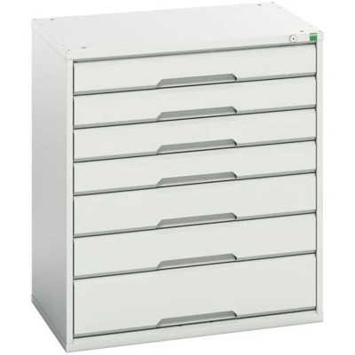 General description This Bott Verso 7 Drawer Cabinet is designed for industrial use, featuring a robust construction with fully welded steel housings. It comes in a light grey color (RAL 7035) and offers ample storage with seven drawers of varying heights. Technical specifications Colour: RAL 7035 Light Grey Width: 800mm Depth: 550mm Height: 900mm Number of Drawers: 7 (4 x 100mm, 2 x 125mm, 1 x 175mm) Drawer Capacity: 75kg U.D.L Drawer Slides: 100% extension roller bearing slides Other information All drawers are centrally lockable for security.