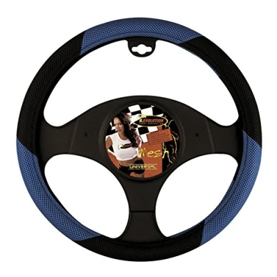 Bottari 13605 Car Steering Wheel Cover, Universal, Breathable Mesh Design, color black and blue., Blue, Diameter 37 39 cm