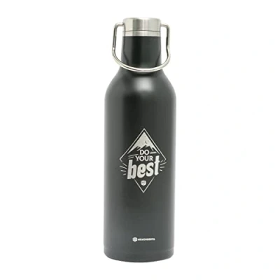 Stainless steel thermal bottle with message It has a handle in which it is airtight. It is suitable for all types of drinks and keeps the temperature cold for 24 hours and warm for 12 hours. BPA Free Capacity: 500 ml