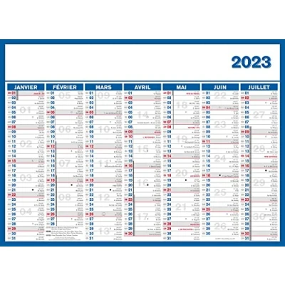Calendar on soft cardboard Grid for 7 months on both sides School holidays, parties, lunaisons, week numbering, date 1 hole Original from France